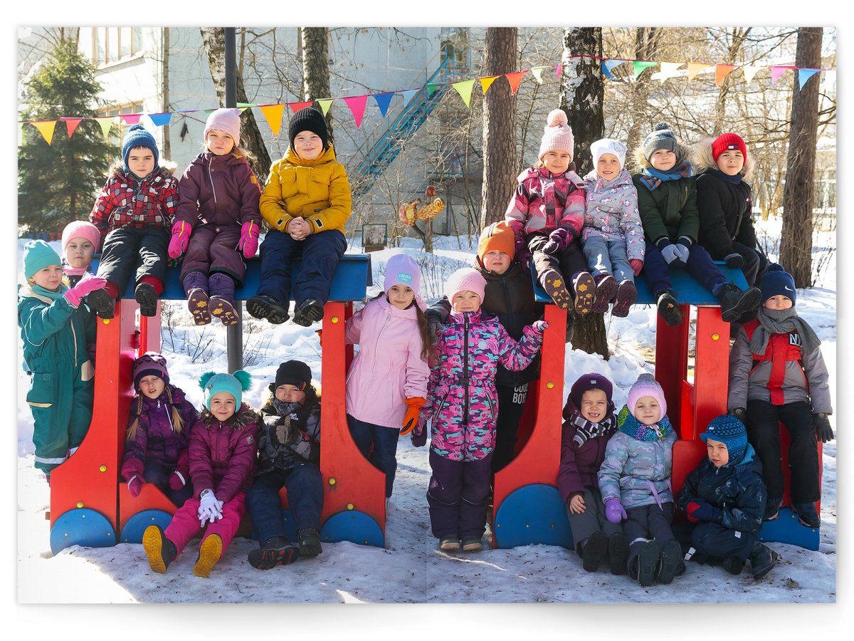 • Портреты всех детей и воспитателей на развороте