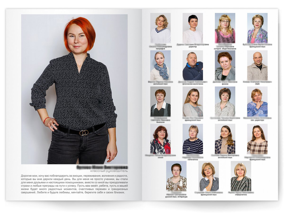 - Съёмка альбома в фотостудии от +750 ₽/человек (точная стоимость зависит от количества учеников и выбранной фотостудии)