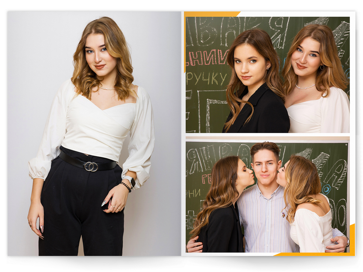 Потому что мы не снимаем «как у всех». Каждый кадр — это маленькое арт-заявление: резкий свет, дерзкие ракурсы, цвет как у лучших fashion-редколлегий. И да — всё это будет снято в вашей школе, а не в студии за три часа езды. Директор не пускает в школу — снимем в студии! Студия оплачивается отдельно.