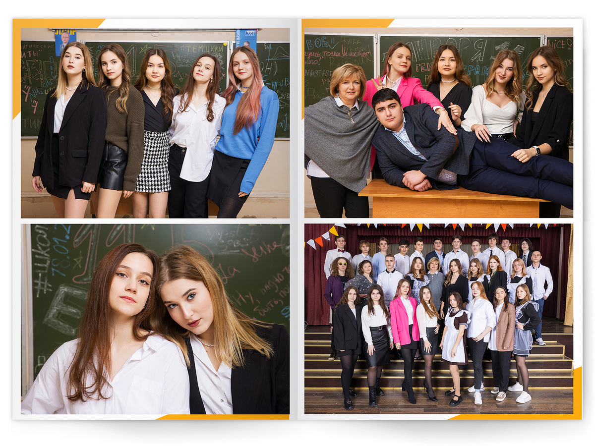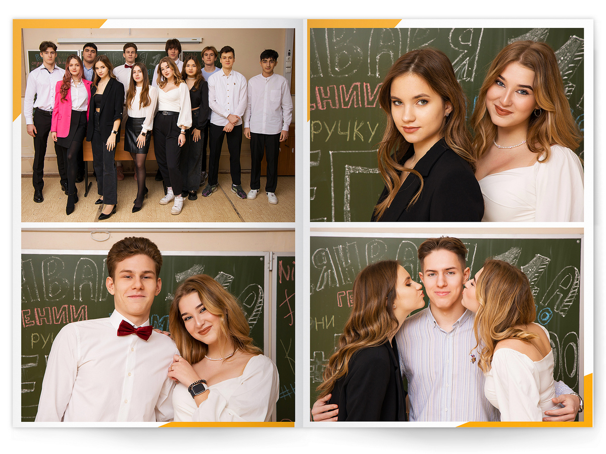 • Съёмка альбома в фотостудии от +750 ₽/человек (точная стоимость зависит от количества учеников и выбранной фотостудии)