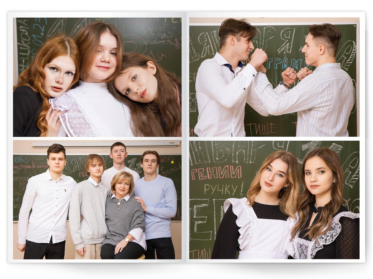 • Съёмка альбома в фотостудии от +750 ₽/человек (точная стоимость зависит от количества учеников и выбранной фотостудии)